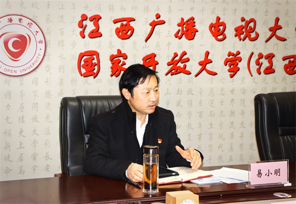 易小明强调,我们要严格按照省委统一要求,认真贯彻落实《中国共产党宣传工作条例》精神,一要进一步加强学校的宣传思想工作,充分利用好现有条件,在持续强化对外宣传的基础上,围绕中心工作、服务发展大局,充分引导校内宣传思想工作。二要严格落实“阵地长”负责制,要与落实意识形态工作紧密结合起来,构建环环相扣的责任落实体系。三要强化校内宣传思想工作的管理督导、日常检查和考核评估,从严执行《江西广播电视大学部门(单位)网站建设运行测评办法》等既有工作制度与标准规程。四要加强学校宣传队伍建设,开展“网格化”宣传思想工作,充分发挥各级党组织宣传委员与各部门(单位)信息员的作用,打造一支政治过硬、本领高强、作风优良的专兼职宣传思想骨干队伍。