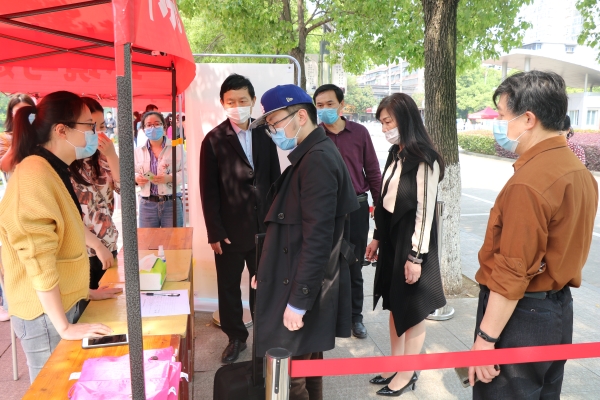 为切实做好复学复课后新冠肺炎疫情防控工作,落实“外防输入、内防反弹”的疫情防控总要求,保障学生安全有序地完成新学期报到工作,4月17日上午,校党委书记易小明,党委副书记、校长朱爱莹,党委委员、纪委书记王水平,党委委员、副校长陈江鸿,党委委员、副校长邱东升,学校相关部门主要负责人到高职学院检查指导疫情防控和开学返校工作。高职学院党政领导班子陪同检查并作现场工作汇报。