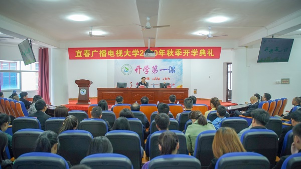 10月17号上午,宜春广播电视大学2020年秋季学期开学典礼在学术报告厅隆重举行。学校特邀中共宜春市委常委、市委宣传部部长袁川为师生讲授“开学第一课”,讲座由宜春广播电视大学党委书记罗咏主持,全体教职工及200余名新老生代表现场聆听授课。宜春市教体局党委书记、局长袁志平,秘书科科长邓俊能,推进办主任曾泉根,市委宣传部教育和未成科科长袁智勇列席。