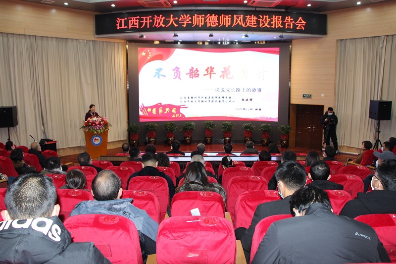 12月19日上午,学校在青山湖校区二楼学术报告厅举行师德师风建设报告会。全国先进工作者、学校校友、兴国县电大工作站站长、兴国县教师进修学校校长赖晓辉同志作主题报告。报告会由校党委委员、副校长邱东升主持。学校中层干部代表、教师代表聆听了报告会。