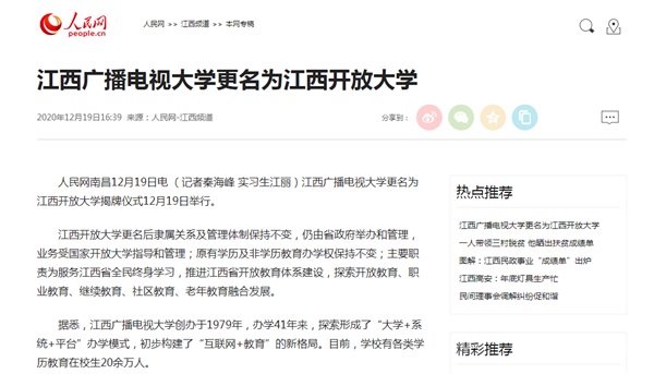 人民网:江西广播电视大学更名为江南官方体育官方入口(China)官方网站