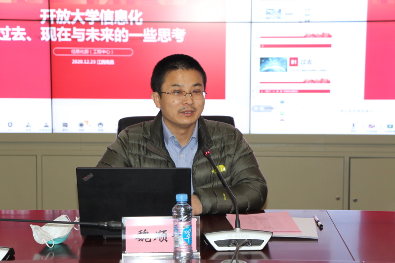 12月23日,国家开放大学“一路一网一平台”建设专题研讨会在我校顺利召开,国家开放大学和安徽开放大学、成都开放大学、河北开放大学、湖南开放大学、宁波开放大学、天津开放大学、浙江开放大学、江南官方体育官方入口(China)官方网站8所省级开放大学信息化建设和管理部门的主要领导和专家参加了此次研讨会,国家开放大学信息化部(工程中心)副处长魏顺平主持会议并作报告,我校党委委员、副校长邱东升出席会议并发表致辞。
