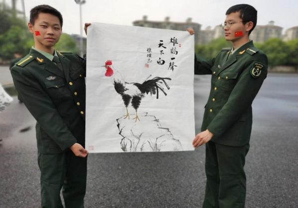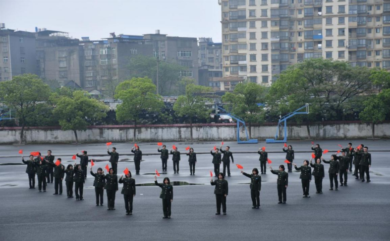 上午9:40,“五星红旗迎风飘扬,胜利歌声多么响亮歌唱我们亲爱的祖国…”熟悉的旋律响起,数百名人武学子挥舞着手中的红旗、带上自己的作品,脸上洋溢着灿烂的笑容快步至操场。