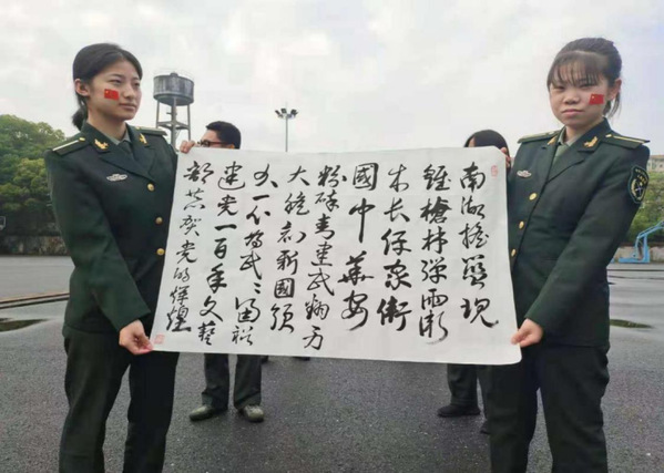 4月21日,学校人武学院人文系全体教师和部分学生通过快闪活动向中国共产党百年华诞献礼,以青春悦美音章礼赞伟大祖国。学院副院长占农、杨柳参加此次快闪活动。