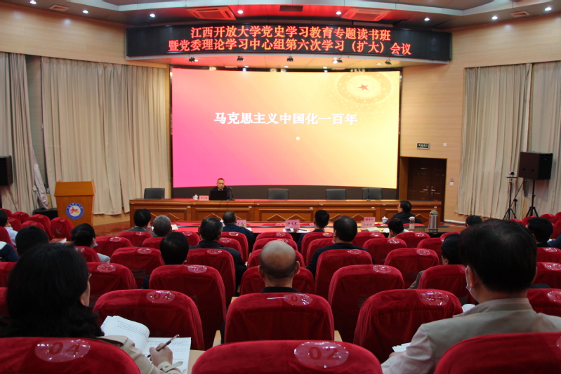 4月25日,江南官方体育官方入口(China)官方网站党史学习教育专题读书班开班式在青山湖校区举行,学校特邀中国社科院马克思主义研究院马克思主义中国化研究部主任,研究员刘志明教授作首期专题辅导。校党委副书记邓文君出席并做动员讲话,副校长刘平,党委委员、副校长邱东升,党委委员、副校长冯豫红出席,学校副处级以上干部参加读书班。本次读书班由校党委副书记、校长黄平槐主持。