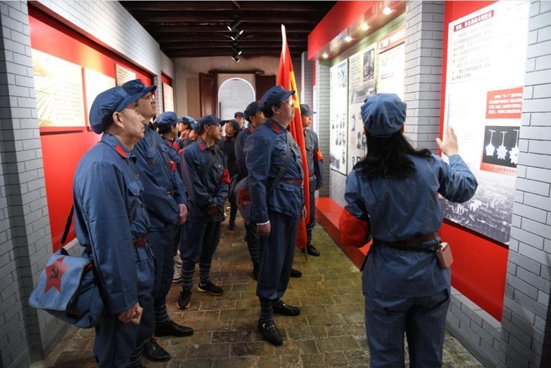 风雨如磐,岁月沧桑。在中共苏区中央局、中华苏维埃中央革命军事委员会、红军第一部无线电侦察台等红色革命旧址群,全体党员面向党旗,举起右手,庄严重温入党誓词。随后,当地讲解员给大家上了一堂精彩纷呈的现场教学课,详细讲解了中央苏区历史时期,毛泽东、朱德、周恩来、邓小平等老一辈无产阶级革命家在这里留下了光辉的战斗和生活足迹,党和群众在小布镇共同开展反“围剿”斗争、发展无线电通讯等各项事业的工作情况。一段段详尽的文字、一张张珍贵的老照片,让大家深刻感受到当年红军艰苦卓绝的革命斗争。