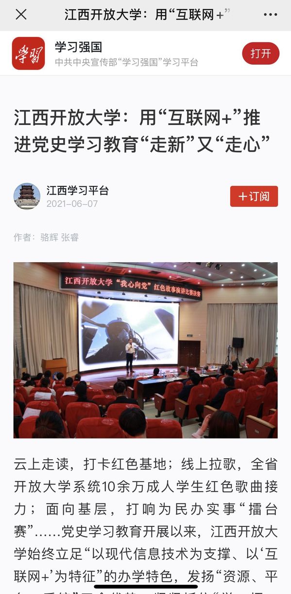 党史学习教育开展以来,学校充分发挥“互联网+”特色,紧紧抓住“学、悟、实、新”四个关键,推动党史学习教育“走新”又“走心”。6月7日,江西日报、学习强国、江西新闻等媒体相继对此进行报道。