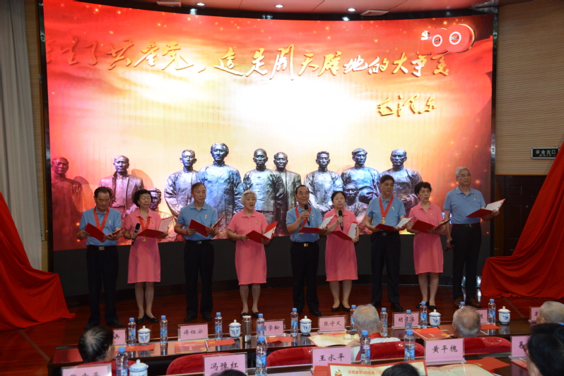 校党委书记易小明为老党员代表颁发“光荣在党50年”纪念章