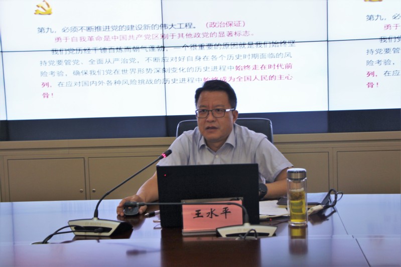 王水平强调,学习贯彻习近平总书记“七一”重要讲话精神,要从总体上把握好习近平总书记“七一”重要讲话的历史背景、重大意义、逻辑框架、主要内容等,要认真领悟贯彻伟大建党精神和“九个必须”重要要求。要一以贯之学深悟透做实习近平新时代中国特色社会主义思想,将思想认识统一到习近平总书记“七一”重要讲话精神上,在学懂、弄通、做实上下功夫。将学习贯彻习近平总书记“七一”重要讲话精神作为党史学习教育的核心内容,做到往深里走、往实里走、往心里走。将学习习近平总书记“七一”重要讲话精神同总结经验、观照现实、推动工作结合起来,把学习成效不断转化为工作的动力和实效。