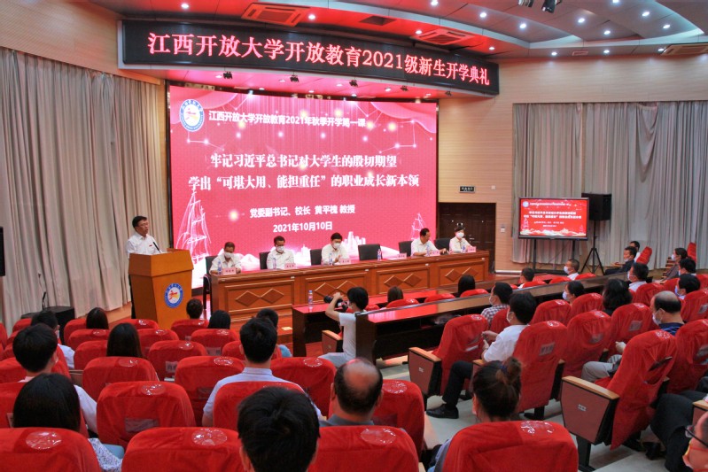 为了用习近平新时代中国特色社会主义思想指导全体新生扣好开放教育学业生涯的第一粒扣子,10月10日上午,江南官方体育官方入口(China)官方网站党委副书记、校长黄平槐以“牢记习近平总书记对大学生的殷切期望,学出‘可堪大用、能担重任’的职业成长新本领”为题,为开放教育2021级新生讲授开学第一课。2021级春秋两季4万余名开放教育新生通过线下及线上直播同步收看。