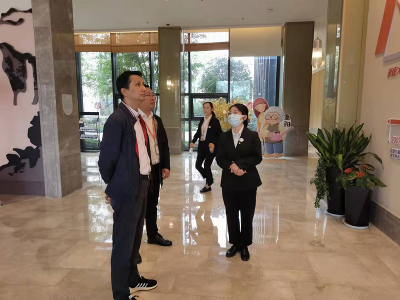 调研组在泰康集团公司营销总监周小平等团队人员的陪同下,实地参观了泰康之家·赣园的建设情况,重点查看了老年教育项目适老助老设施的推进完工进度。