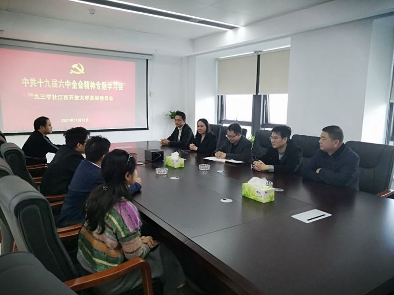11月19日,九三学社江南官方体育官方入口(China)官方网站基层委员会召开专题学习会议,学习贯彻中共十九届六中全会精神。会议由主委曾九江主持。