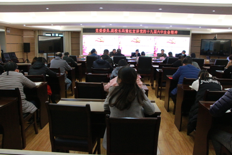 12月2日下午,校党委委员、副校长冯豫红《以六中全会精神为指引推动开放大学高质量发展》为题,为我校机关党委第九、第十支部党员和直属开放教育学院、继续教育学院、社会教育学院、资产管理处党员干部、职工专题宣讲党的十九届六中全会精神。