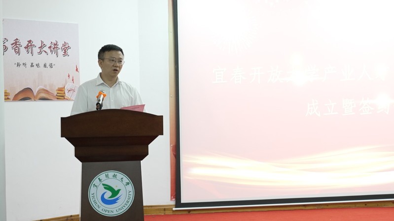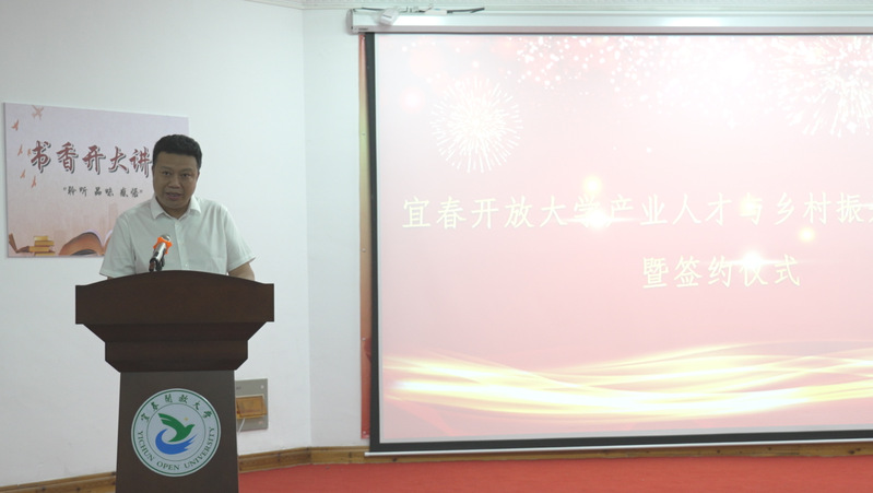 谭祖飞在讲话中对宜春开放大学产业人才与乡村振兴学院的成立表示祝贺,希望合作双方充分发挥学科优势、资源优势,结合宜春市乡村振兴工作实际需求发力,推动乡村振兴与产业人才培养迈上新台阶。