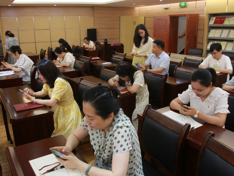 为庆祝建党101周年,喜迎党的二十大胜利召开,6月30日下午,机关党委一、二、三、六支部的党员在青山湖校区第二会议室开展了一次特别的主题党日活动——参加“学习强国”平台的挑战答题。