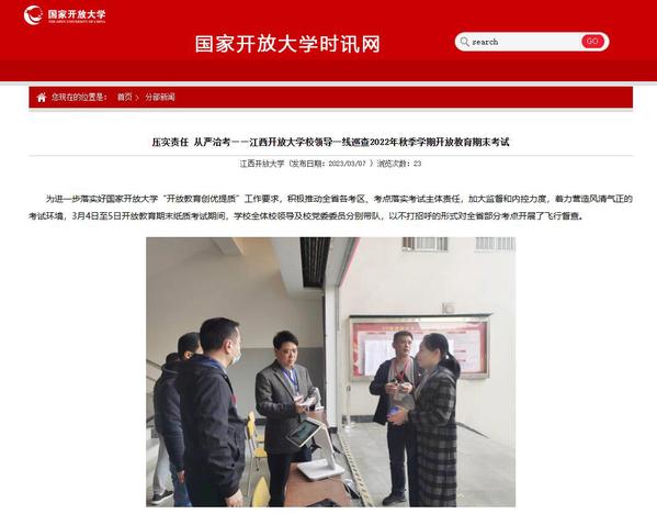 原文地址:压实责任 从严治考——江南官方体育官方入口(China)官方网站校领导一线巡查2022年秋季学期开放教育期末考试-国家开放大学时讯网 (ouchn.edu.cn)
