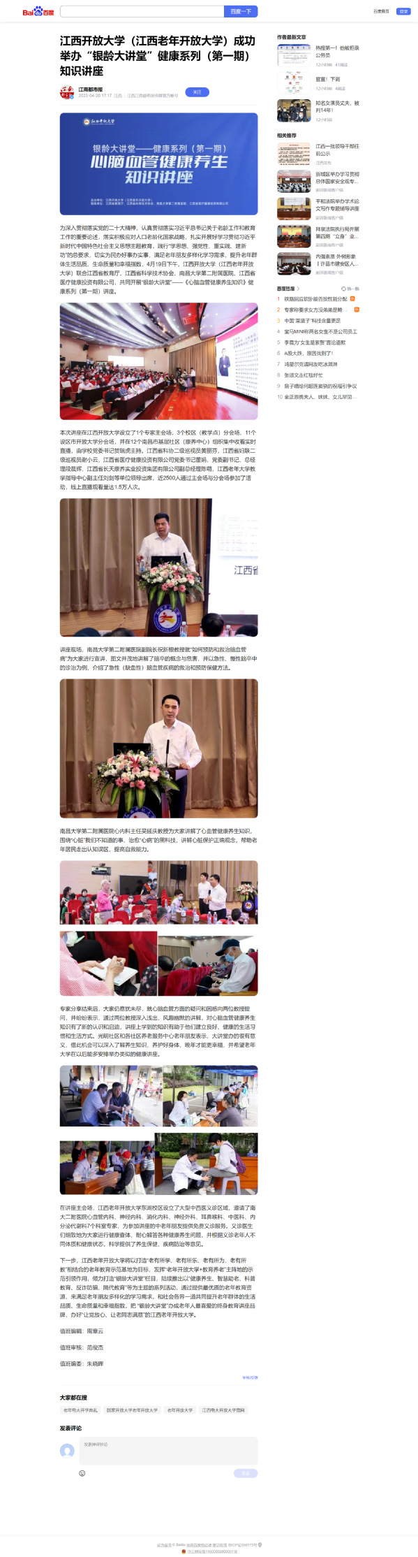 江南都市报:江南官方体育官方入口(China)官方网站(江西老年开放大学)成功举办“银龄大讲堂”健康系列(第一期)知识讲座