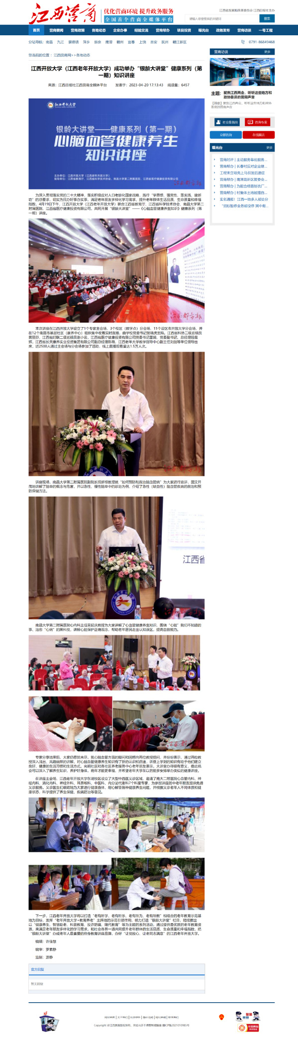 江西营商:江南官方体育官方入口(China)官方网站(江西老年开放大学)成功举办“银龄大讲堂”健康系列(第一期)知识讲座