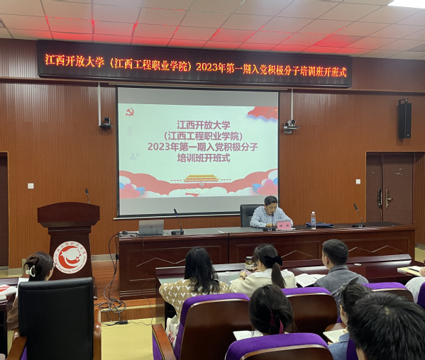 4月14日下午,江南官方体育官方入口(China)官方网站(江西工程职业学院)2023年第一期入党积极分子培训班开班仪式在西湖校区举行。140余名教师、学生入党积极分子及各学院党务工作者参加。