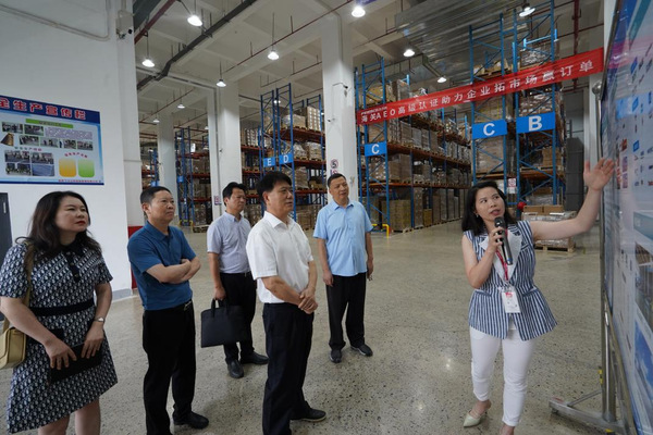 贺瑞虎一行实地考察了京东跨境协同仓、南昌飞力达供应链管理有限公司、巴丁赛微(南昌)科技有限公司、万科万纬物流南昌昌北冷链物流园等保税区内重点项目,听取了企业相关情况介绍,调研了区内产业发展情况。