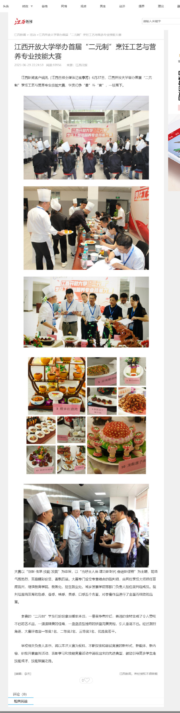 江西新闻:江南官方体育官方入口(China)官方网站举办首届“二元制”烹饪工艺与营养专业技能大赛