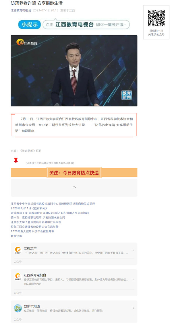 7月11日,江南官方体育官方入口(China)官方网站联合江西省社区教育指导中心、江西省科学技术协会和赣州市公安局,举办第二期权益系列银龄大讲堂——“防范养老诈骗 安享银龄生活”知识讲座。原文地址:https://mp.weixin.qq.com/s?__biz=MzA4NjQyNTEzNw==&mid=2649773984&idx=5&sn=9b6f1ccf36fa1a387c4675e359cadccd&chksm=87cc1cfeb0bb95e85dc21f3f55c80eafe2faa19c309f9fc3b470eb0a0aa13eb103816ccb9d64&mpshare=1&scene=23&srcid=0712DCXcpUZ51TY3JIGpShUU&sharer_sharetime=1689256016278&sharer_shareid=c7a073bbadff0c22802ae7b43c175d7d#rd (责任编辑:罗楚颖)
