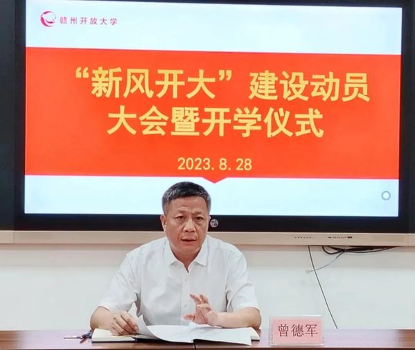 立足新起点,开启新征程,8月28日,赣州开放大学召开建设“新风开大”动员大会。赣州开放大学党委副书记、校长曾德军出席会议并作题为《敬学广惠再起航 创新创业向未来》的动员讲话,校领导班子成员、全体教职工参加会议,会议由党委委员、副校长卢旗英主持。