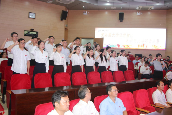 大会举行了新入职教师宣誓,新入职教师们郑重接过由校领导颁发的校徽,逐一佩戴至左胸口,面对国旗,庄严宣誓:“我志愿成为一名人民教师,忠诚党的教育事业,坚定理想信念……”铿锵誓言在会场回荡,标志着新入职教师们的人生新岗位由此启程,承诺将忠诚于党的教育事业,牢记为党育人、为国育才的神圣使命与职责。