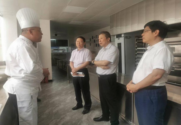 9月7日下午,校党委委员、副校长徐光兵深入西湖校区,与21烹饪工艺与营养1班同学们一起在烹饪实训室体验实训课程。