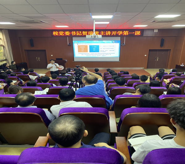 近日,校党委书记贺瑞虎以“技能铸就辉煌 立志报效祖国”为题,在西湖校区为学生讲授“开学第一课”。贺瑞虎紧紧围绕学生关注的学业规划、就业规划、人生规划等热点问题讲授“开学第一课”,在我院学生中引发热烈反响,激励学子们以技能点亮精彩人生、实现报国之志。聆听报告后同学们纷纷表达了自己的感悟和体会。