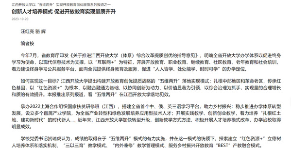 今年7月,省教育厅印发《关于推进江南官方体育官方入口(China)官方网站(体系)综合改革提质创优的指导意见》,明确全省开放大学办学体系以促进终身学习为使命,以现代信息技术为支撑,以“互联网+”为特征,开展开放教育、职业教育、继续教育、社区教育、老年教育和社会培训,着力建设终身学习公共服务平台,面向全民提供终身教育及服务,促进“人人皆学、处处能学、时时可学”的办学定位。