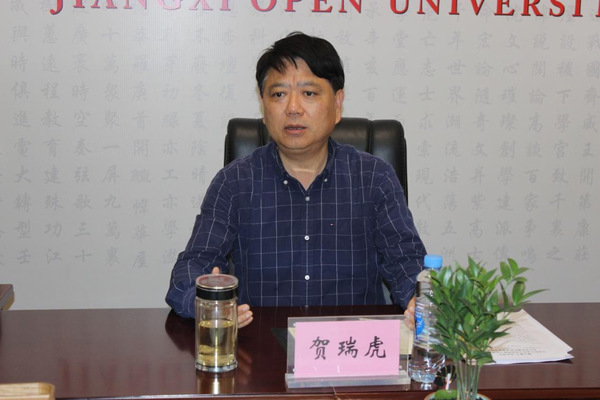 贺瑞虎要求,一要迅速兴起学习宣传贯彻热潮。把学习好、宣传好、贯彻好习近平总书记的重要讲话,作为当前和今后一个时期的首要政治任务和头等大事来抓,精心组织、周密部署、科学安排,不断强化宣传宣讲、学习研讨、理论阐释,推进习近平总书记考察江西重要讲话精神进设区市开放大学,进班级、寝室、学院,切实把全校师生的思想和行动统一到习近平总书记对江西的殷切嘱托和工作要求上来,进一步坚定理想信念、坚定发展信心、研究发展对策、推进转型升级,以实际行动回报习近平总书记和党中央的关心厚爱。二要对标对表重要讲话精神的工作要求。结合省委打造“三大高地”、实施“五大战略”部署,以服务地方经济社会高质量发展为导向优化学科专业布局,进一步加大高技能人才培养力度,推动各专业学院主动对接行业、产业、企业,以深化校企合作推进产教深度融合。找准差异化、错位化、特色化发展新赛道,在终身教育领域展现开放大学的作为。积极贯彻落实人口老龄化国家战略,构建切实有效的决策和执行机制,用心用力助推国家老年大学体系在江西落地,围绕“德学康乐为”的办学宗旨,促进老年人厚德修身、终身学习、主动健康、乐享生活、积极作为,不断满足老年人多样化的学习需求,努力打造全省老年朋友的知识学园、生活乐园和精神家园。打造对内对外开放工作格局,主动服务和融入新发展格局,不断完善“融合融通”的体制机制改革,推进“三定”方案落实落地。持续做好“一村一名大学生”计划,落实好乡村教师学历提升计划的各项工作,不断夯实巩固拓展脱贫攻坚成果与乡村振兴工作基础,持续为江西经济社会发展培养大量“留得住、用得上、干得好”的应用型人才。三要持之以恒坚持和加强党的全面领导。重点抓好党委班子建设,以政治建设统领党的各项建设,不断提高新时代党的建设质量。坚持党内监督和人民群众监督相结合,时刻铭记“党风廉政建设永远在路上,反腐败斗争永远在路上”,弘扬伟大建党精神和自我革命精神,纵深推进全面从严治党,持续深化作风建设,一体推进不敢腐、不能腐、不想腐。大力弘扬井冈山精神、苏区精神、长征精神,传承红色基因,赓续红色血脉,筑牢政治忠诚,发挥表率作用,务必敢于斗争、善于斗争,持续营造学校风清气正、干事创业的良好政治生态。