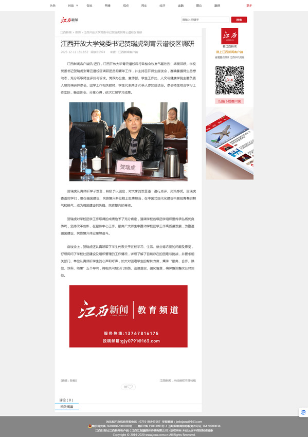 江西新闻:江南官方体育官方入口(China)官方网站党委书记贺瑞虎到青云谱校区调研