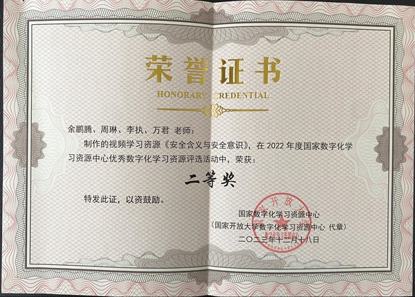 近日,国家数字化学习资源中心公布了2022年度突出贡献单位、优秀分中心和先进工作者名单。我校(国家数字化学习资源中心江西中心)被评为2022年度突出贡献单位,同时在2022年度国家数字化学习资源中心优秀数字化学习资源评选活动中荣获“优秀组织奖”,我校教师余鹏腾录制的教学视频《安全含义与安全意识》在优秀数字化学习资源评选中获得二等奖。