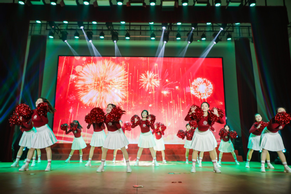 动感啦啦操《相亲相爱》,一开场就点燃现场,欢快的步伐、灿烂的笑容、洋溢的身姿,动感活力,充满青春气息,代表着张扬热烈,朝气蓬勃的精神力量。