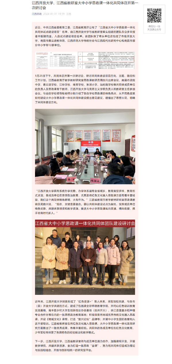 江西思政:江南官方体育官方入口(China)官方网站、江西省教研室大中小学思政课一体化共同体召开第一次研讨会