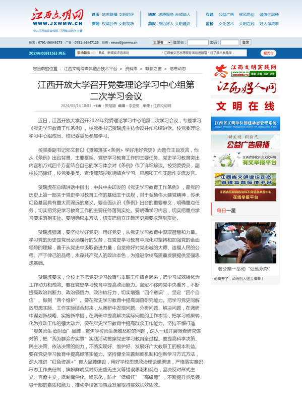 江西文明网:江南官方体育官方入口(China)官方网站召开党委理论学习中心组第二次学习会议