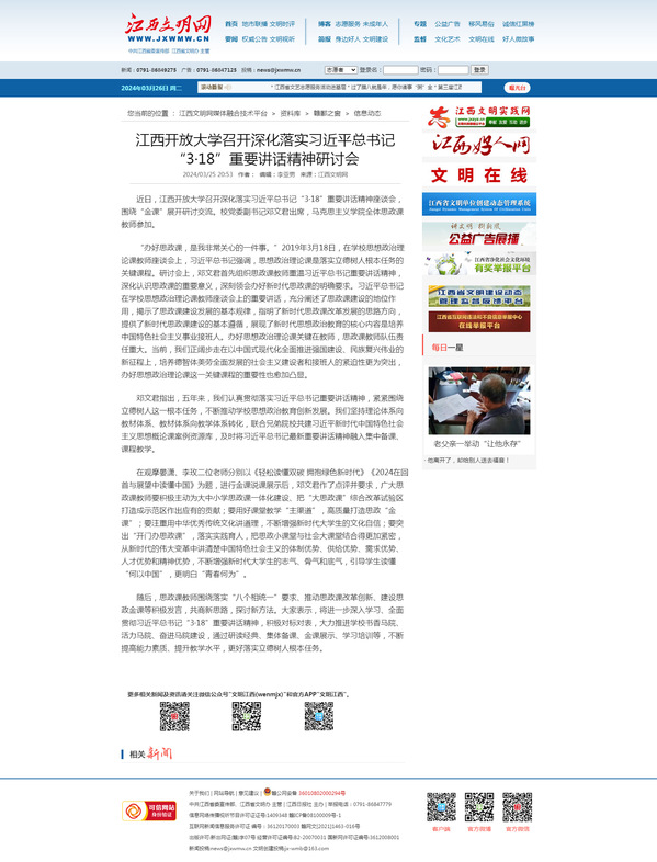 近日,江南官方体育官方入口(China)官方网站召开深化落实习近平总书记“3·18”重要讲话精神座谈会,围绕“金课”展开研讨交流。校党委副书记邓文君出席,马克思主义学院全体思政课教师参加。