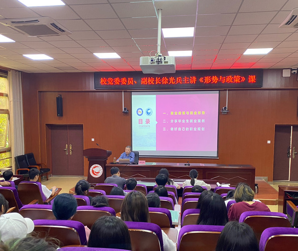 徐光兵从就业形势总体稳定、就业总量压力仍存、就业结构性矛盾仍较突出三个方面,深入分析了当前整体就业形势;从教育部、教育厅、学校三个层面,深入解读了促进毕业生就业的相关政策和举措;还针对大学生就业存在的“迷茫和焦虑”现象,深入浅出地指导同学们科学规划职业生涯。他引用学校毕业生在职场就业、自主创业、应征入伍、专升本或考编等方面成功就业的五个典型案例,勉励同学们要培养“能吃苦、会动手、善学习”的能力,增强就业信心,积极参与就业准备工作。