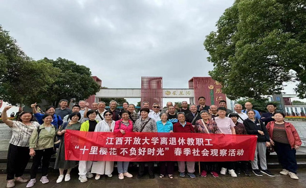 为丰富离退休教职工的精神文化生活,表达学校对老同志的关爱,促进老同志的身心健康,4月28至29日,学校分2批组织70余名离退休教职工到南昌县黄马乡凤凰沟风景区,开展“十里樱花 不负好时光”春季社会观察活动。