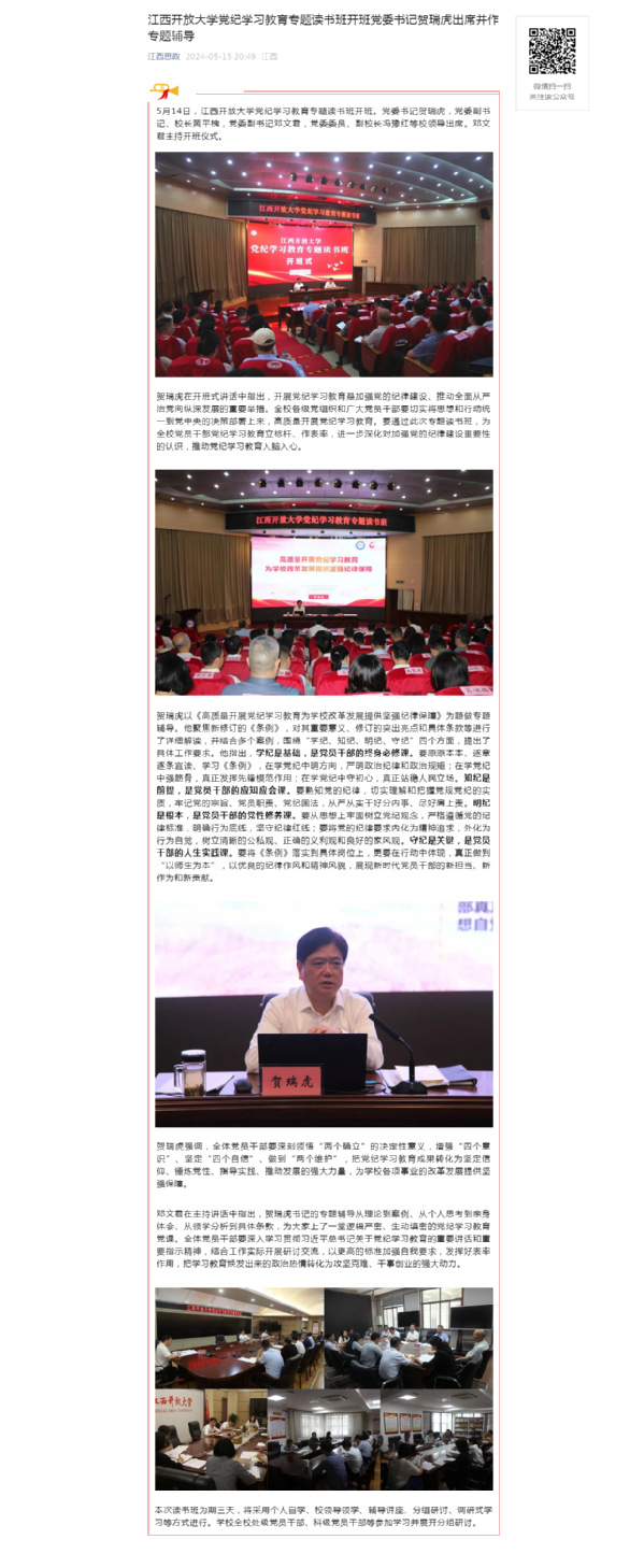 5月14日,江南官方体育官方入口(China)官方网站党纪学习教育专题读书班开班。党委书记贺瑞虎,党委副书记、校长黄平槐,党委副书记邓文君,党委委员、副校长冯豫红等校领导出席。邓文君主持开班仪式。原文地址:https://mp.weixin.qq.com/s?__biz=MzI1OTM4MDMzMA==&mid=2247589458&idx=5&sn=787d08d73ca80341fc829af9b75b19fe&chksm=ea7a1b57dd0d9241be9033a8739b294a03cdf401afa740a1dcfbad8de9ce2a2918e93217ebb4&mpshare=1&scene=1&srcid=0516IhrSWlwHWuBIvDLzwcDJ&sharer_shareinfo=b99b1c2e720458d9ade645f45464ff17&sharer_shareinfo_first=b99b1c2e720458d9ade645f45464ff17&exportkey=n_ChQIAhIQ%2FMUWVjdl4Xr2g%2FBJXxH55RLuAQIE97dBBAEAAAAAAMC7N2IPfAcAAAAOpnltbLcz9gKNyK89dVj0BYtnmnt4n1Y%2FNQHCYQqq3eHFV%2F%2BX3D5QIUF%2BLN5P5nkhZZvxzpm3SAgdb%2FCRc%2FSw%2BoiX1tfhUvynxa4Kho5taHT9%2BejUnxg2cu3UXRFV4DgqCId%2F4vFO8PAPmndWrRJLqS09mp7J0NUq4ewGI1XaWf4ZQVYtIF5kS5SSpIibnNNP%2BS96gXifCof5XSRPs73ncs9ov95mSt1Jx6UFaKuBaNin0l4qdC%2BJKT87GedntLWb%2Fjzlw89olW1R%2FDBhvKXpC1A6ijgDtSk%3D&acctmode=0&pass_ticket=CJl7qPU6tLn40sQZtb7Km2RwmGvoIIs1mMOqduRn7MEiMrN4CRUVhpSr2Jgi1CPfQIoAjgM9tr16ZZAXyTJtPQ%3D%3D&wx_header=0#rd (责任编辑:罗楚颖)