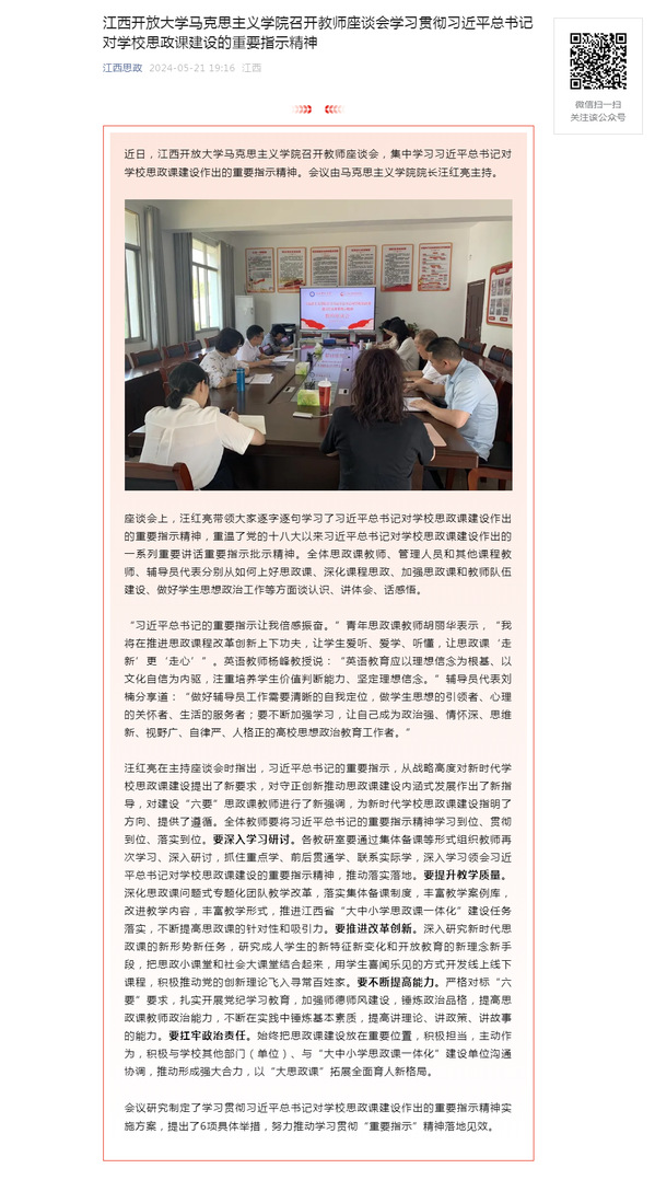 近日,江南官方体育官方入口(China)官方网站马克思主义学院召开教师座谈会,集中学习习近平总书记对学校思政课建设作出的重要指示精神。会议由马克思主义学院院长汪红亮主持。原文地址:https://mp.weixin.qq.com/s?__biz=MzI1OTM4MDMzMA==&mid=2247589726&idx=1&sn=f4727baa972d9d682986a861d09a299c&chksm=ea7a1a5bdd0d934de8bf7db323158a5f1302b69147a3c064cc0048db207350fd9fcf013dc40a&mpshare=1&scene=1&srcid=0521TSdnXrx5XIkOTHR6jiiO&sharer_shareinfo=2f66ce55f7051cfa5e809fbeb8be135a&sharer_shareinfo_first=2f66ce55f7051cfa5e809fbeb8be135a&exportkey=n_ChQIAhIQVMv4iU477LjWZCQCq0RuORL1AQIE97dBBAEAAAAAAAzZAgDPP9YAAAAOpnltbLcz9gKNyK89dVj0Q%2BTjawMIX9vWmnbrdm%2BEYdRNHYjz2vY0SnJY9d9ckePogvsydyOZ2sQ%2FHWBm7IoMG98q8dFdAw9Dk4hyTusu%2FtDWvTxySZA8DXRh91cPKF6dPIZ3SWa86OJFwzAvW0s6YsDlQfDfmO33jhOascRvlVgdC2YSytZUAkkBKYUuNNHqTlBZZrwyN2JH2kYq%2FXgB1gyqOEiwNVedHNbnCE9yow3RTuzRU5ayV6cWr9%2FnthnLzj7%2F0lEuVGHifBuCSy%2BO01UmuXohmnol06y9vdt%2F&acctmode=0&pass_ticket=naWhV2WfNH0AFh73AIgKrDMHF442MHuvf4UDb1M4KyXV%2B3UFbx9a%2BeJ7jGO%2BOl%2Bl&wx_header=0#rd (责任编辑:罗楚颖)