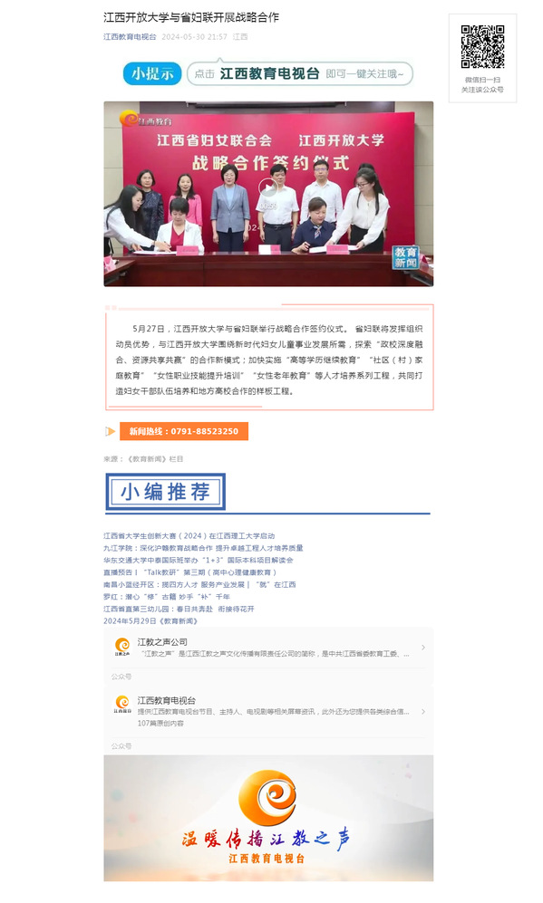 5月27日,江南官方体育官方入口(China)官方网站与省妇联举行战略合作签约仪式。 省妇联将发挥组织动员优势,与江南官方体育官方入口(China)官方网站围绕新时代妇女儿童事业发展所需,探索“政校深度融合、资源共享共赢”的合作新模式;加快实施“高等学历继续教育”“社区(村)家庭教育”“女性职业技能提升培训”“女性老年教育”等人才培养系列工程,共同打造妇女干部队伍培养和地方高校合作的样板工程。