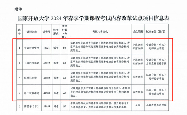 本次由我校牵头入选的《农村社会学》和《电子政务概论》两门课程,依托学校实施“一村一名大学生工程(计划)”项目的深厚积淀,在国家开放大学的指导下,充分考虑学生的工作实际,瞄准学生的实际应用场景,以解决实际问题为目标导向,结合江西本土实践案例,从课程考试内容上进行了系统、深入的更新与改革,改革的理念和内容得到了总部专家的高度认可。