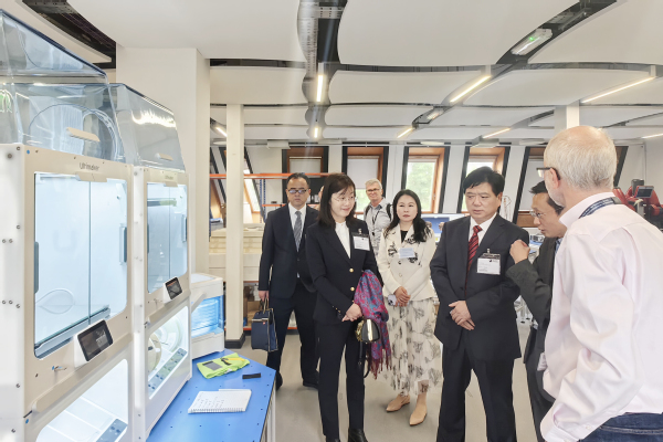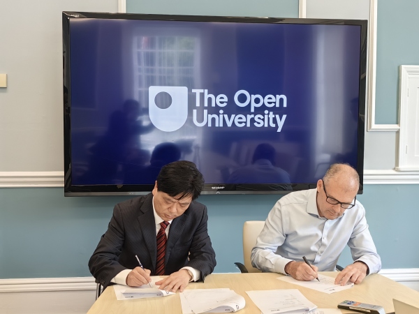 在英国开放大学访问期间,贺瑞虎与该校副校长Kevin Shakesheff教授进行了深入交流。重点围绕开放教育教学质量提升、教学支持服务、师资队伍建设、课程设计以及教师赴英培训等事宜进行充分商讨,双方就进一步深化交流合作、推动两校关系迈上新台阶达成共识,贺瑞虎代表学校签署了《江南官方体育官方入口(China)官方网站与英国开放大学合作谅解备忘录》。交流结束后,学校代表团受邀参观了该校远程教育实训中心OPENSTEAM实验室。