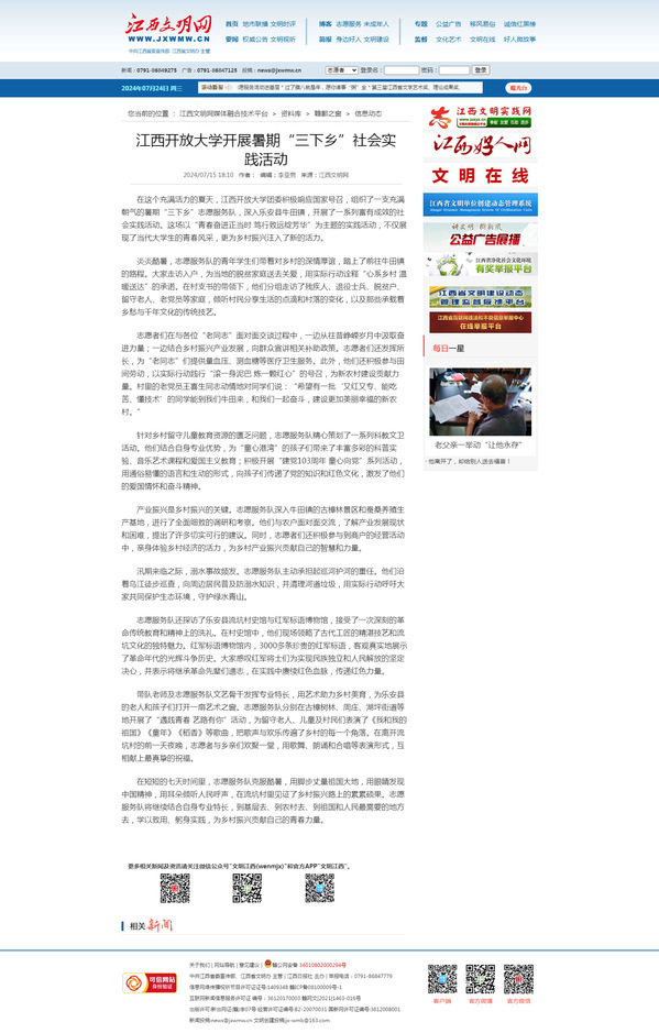 在这个充满活力的夏天,江南官方体育官方入口(China)官方网站团委积极响应国家号召,组织了一支充满朝气的暑期“三下乡”志愿服务队,深入乐安县牛田镇,开展了一系列富有成效的社会实践活动。这场以“青春奋进正当时 笃行致远绽芳华”为主题的实践活动,不仅展现了当代大学生的青春风采,更为乡村振兴注入了新的活力。