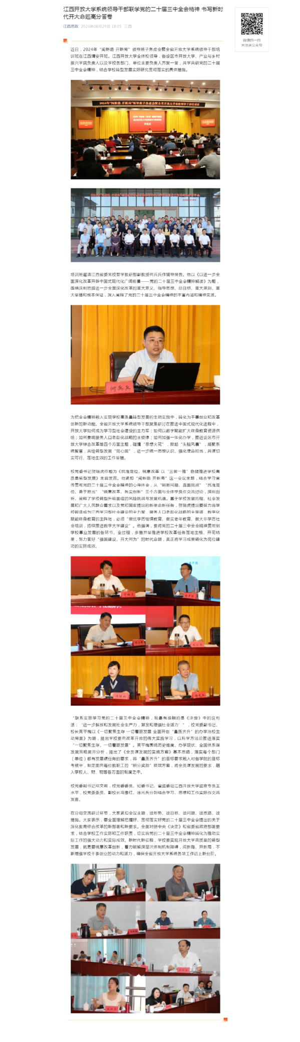 近日,2024年“闯新路 开新局”领导班子务虚会暨全省开放大学系统领导干部培训班在江西靖安开班。江南官方体育官方入口(China)官方网站全体校领导,各设区市开放大学、产业与乡村振兴学院负责人以及学校各部门、单位主要负责人齐聚一堂,共学共研党的二十届三中全会精神,结合学校转型发展实际研究贯彻落实的具体措施。