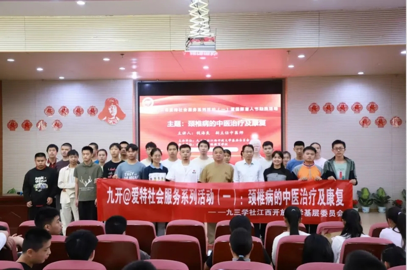 10月15日是第41个国际盲人节,在这个特别的日子里,九三学社江南官方体育官方入口(China)官方网站基层委员会“九开@爱特”社会服务团成员在主委曾九江的带领下,走进南昌市特殊教育学校,组织开展“九开@爱特”社会服务系列活动(一)暨国际盲人节助残活动。活动特邀赣江堂执行院长钱海良副主任中医师作“颈椎病的中医治疗及康复”专题讲座。南昌市特殊教育学校师生及家长近100人参加了活动。