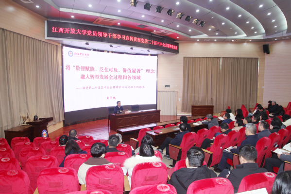 12月19日上午,校党委副书记、校长黄平槐以《将“数智赋能、泛在可及、价值显著”理念融入转型发展全过程和各领域》为题,作学习贯彻党的二十届三中全会精神专题辅导报告,学校处级干部及部分支部党员共100余人参加。