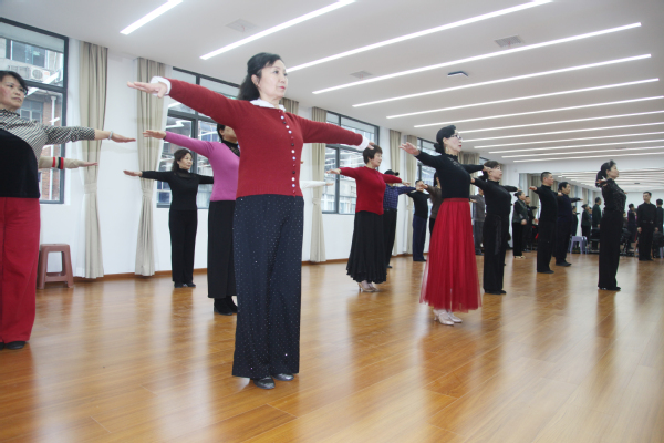 “除了学习还有演出活动,让我们在一次次学习和一场场表演中找回了青春和信心。”国标(摩登)基础班二班学员开心说道。